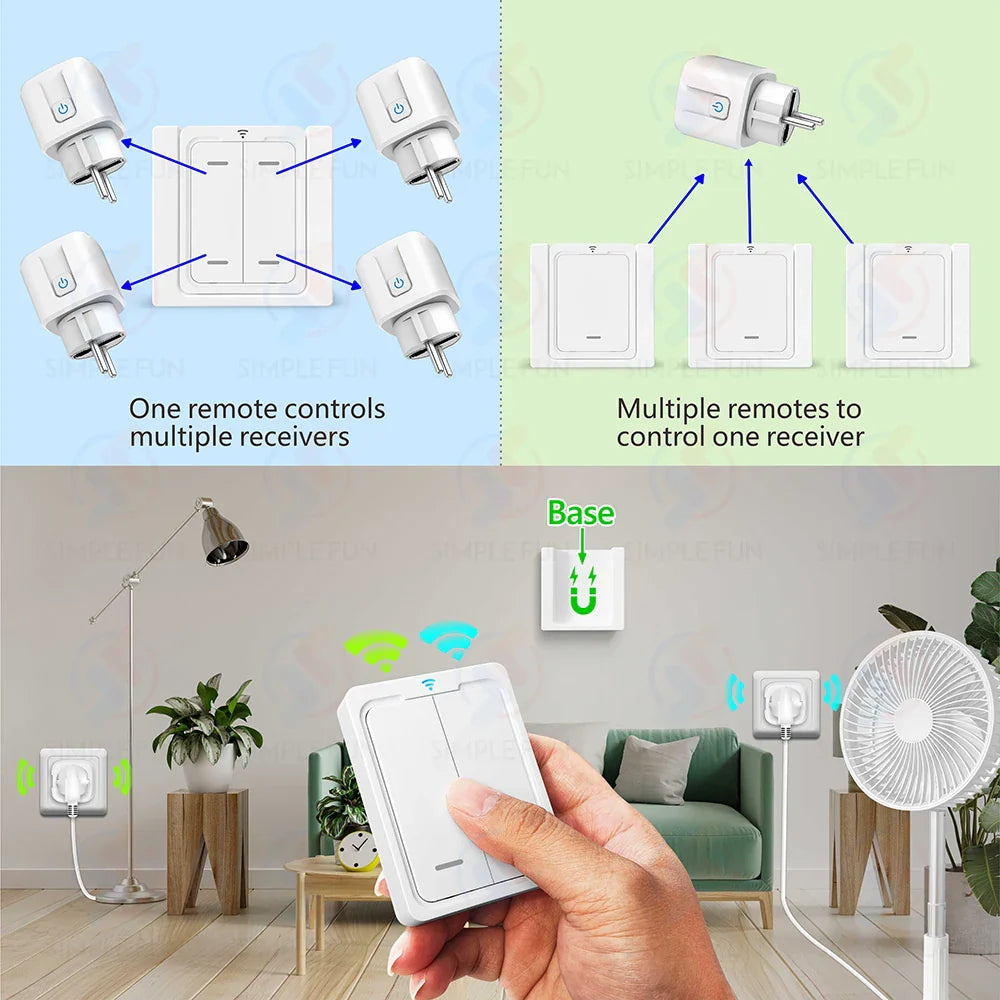 No interference to use several in the same room, One socket can be stably paired with up to 30 wireless switches, or one wireless switch can control 4 sockets at the same time.