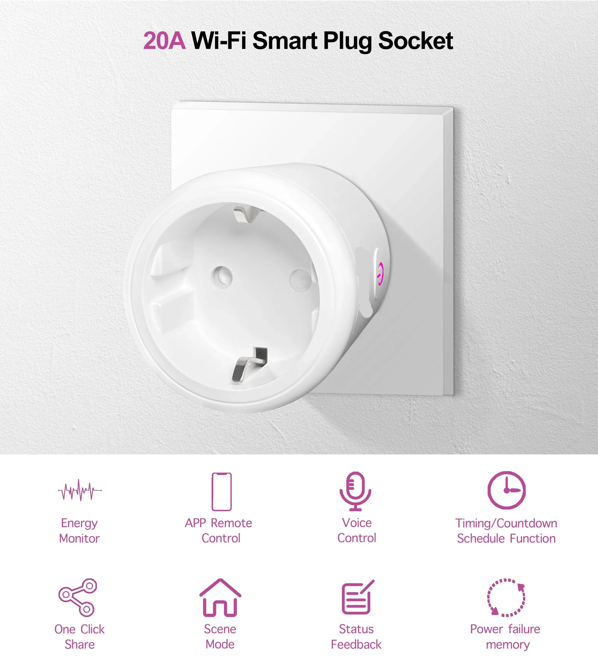 Enhance your smart home with the JSPTEC Tuya ZigBee Smart Plug 20A. This high-capacity EU socket supports up to 4200W, offers real-time power monitoring, and integrates seamlessly with Alexa, Google Assistant, and Yandex Alice for voice control.