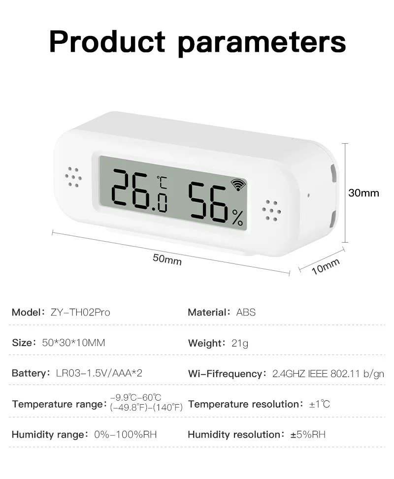 • Compact Design: Small and easy to install in any room for precise temperature and humidity monitoring.
