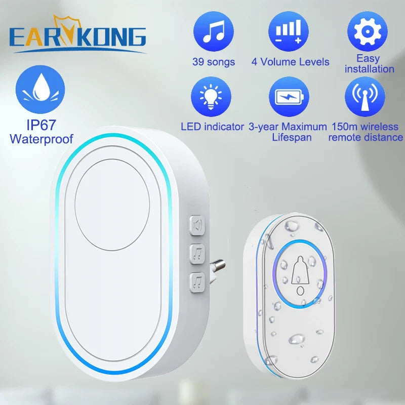 Upgrade your home security with the Intelligent Wireless Doorbell. Featuring a waterproof design, 300m remote range, and multiple plug options (EU, UK, US), this smart doorbell offers a welcome chime with advanced features for easy installation and use.