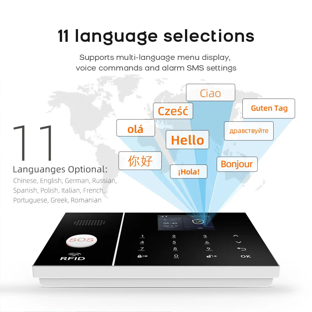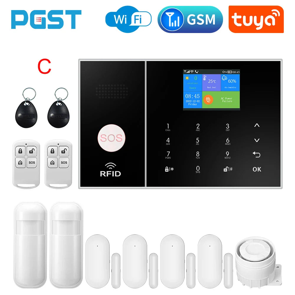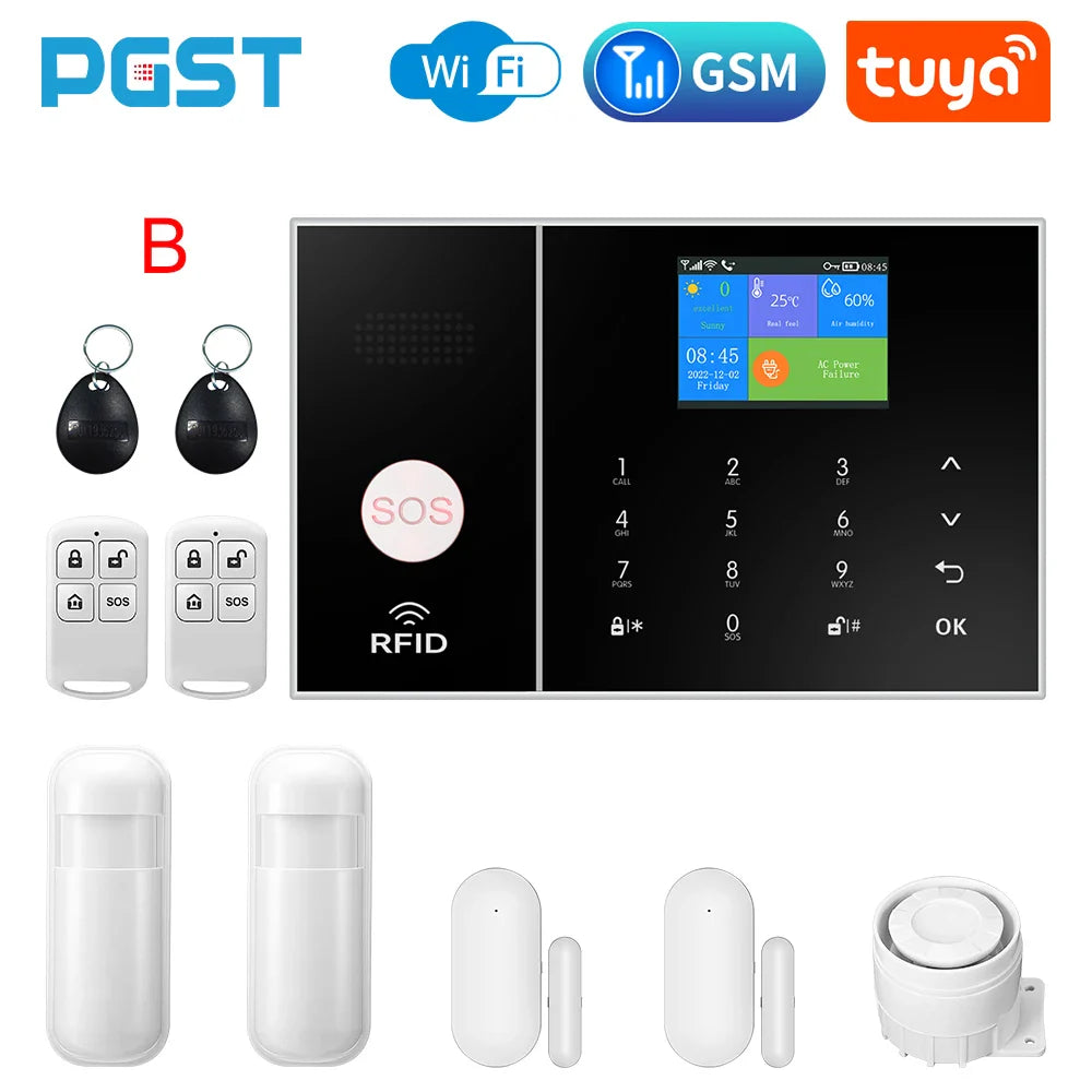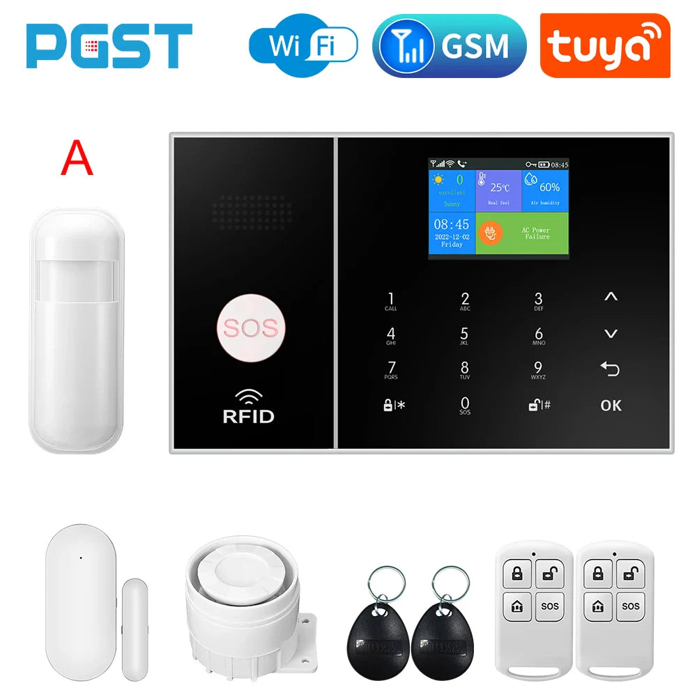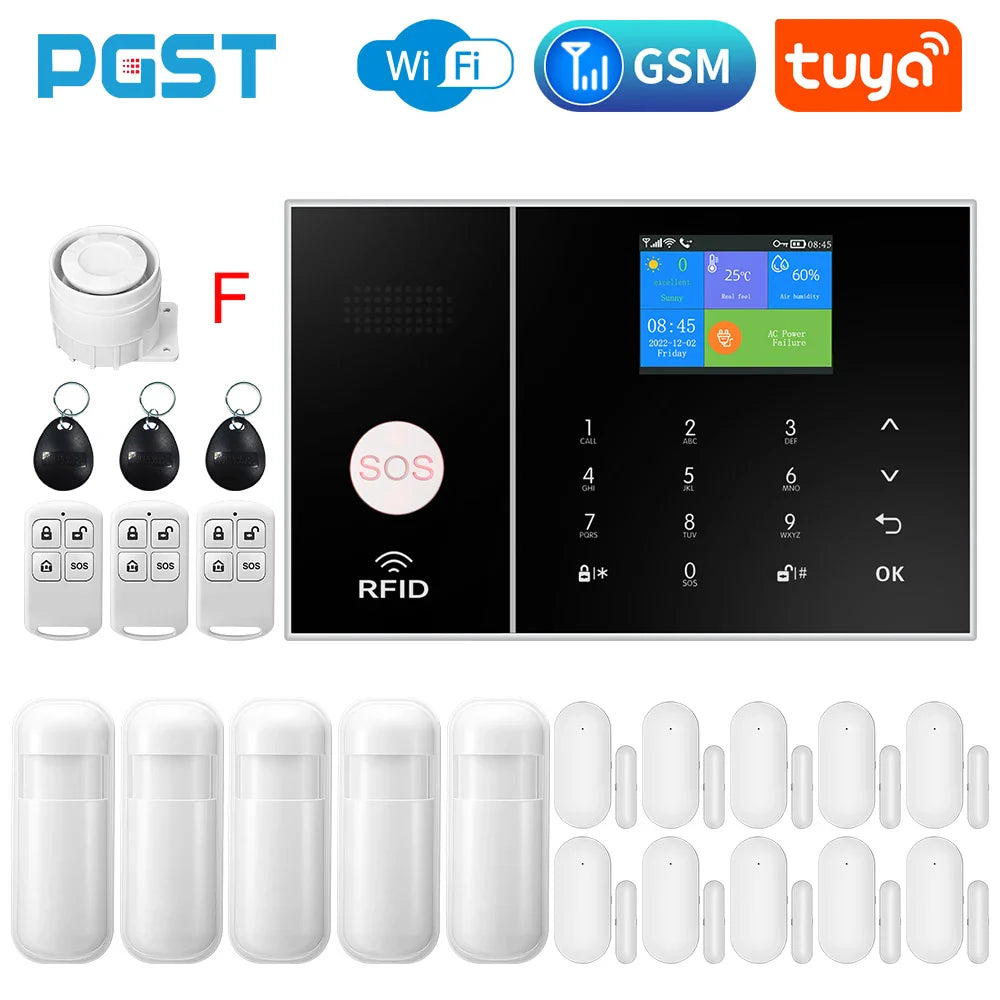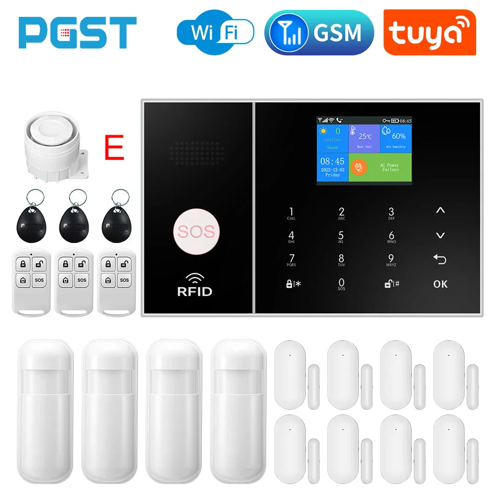 The Wireless Home Alarm System offers comprehensive security with 4G and WiFi connectivity. Integrated with Tuya Smart Home, it includes phone alerts, child safety features, anti-theft protection, and camera automation for complete home security.