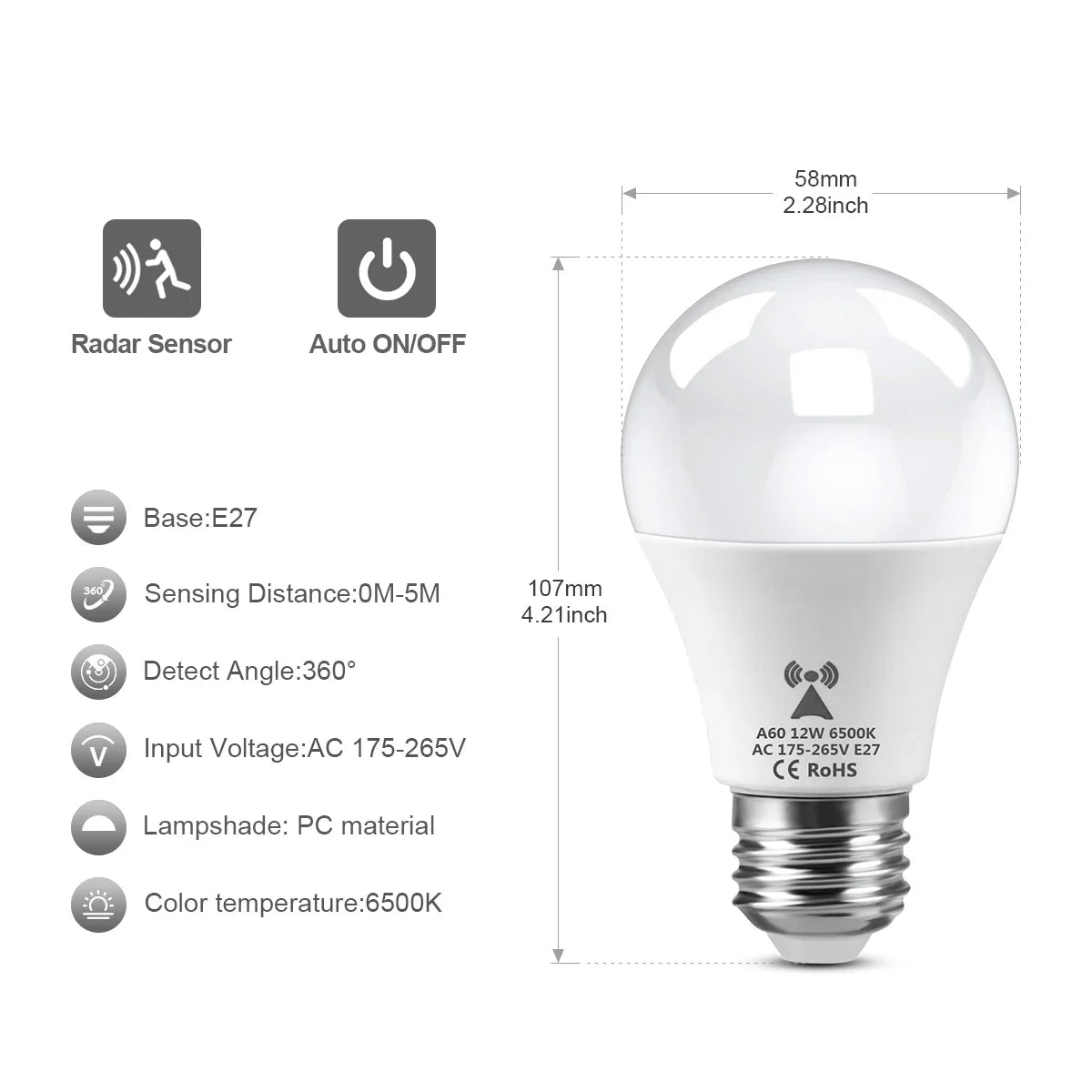 π‘ Microwave Radar Detection LED Light Bulb β 12W E27 Motion Sensor Lamp for Home & Stairs π πΆβοΈ