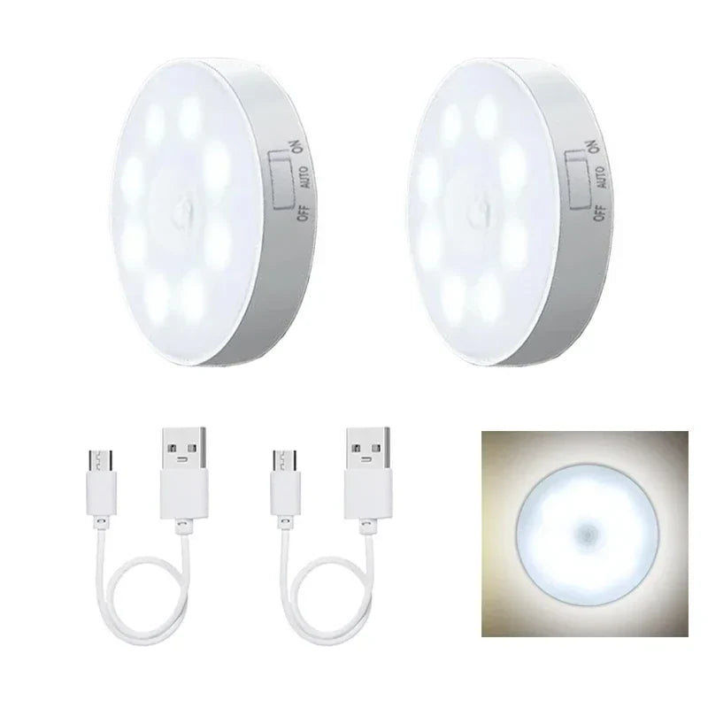 Illuminate your space with ease using the Motion Sensor USB Rechargeable Night Light. Perfect for kitchens, bedrooms, stairs, hallways, or closets, this LED lamp automatically lights up when motion is detected, providing convenience and energy savings.