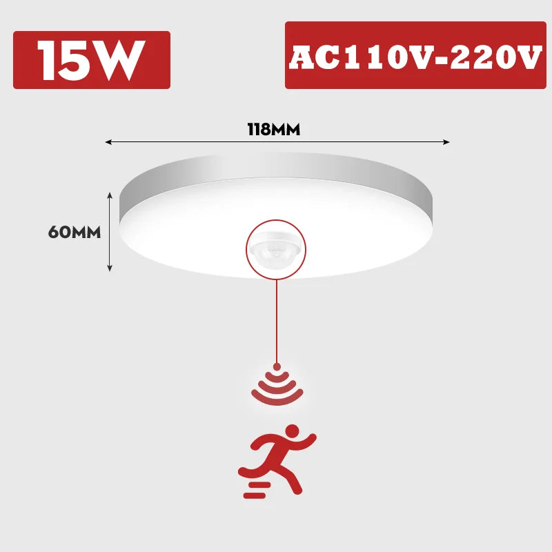 Experience hands-free lighting with this PIR motion sensor LED ceiling lamp. Compatible with 110V and 220V, it’s ideal for corridors, bedrooms, toilets, and other spaces needing automatic illumination triggered by human movement.