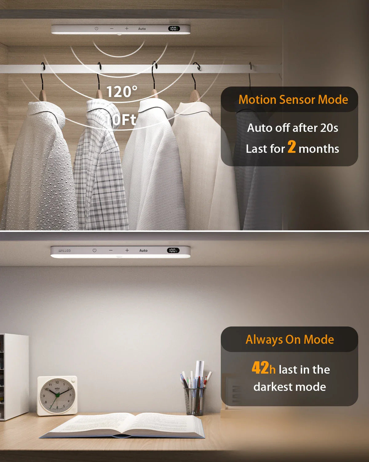 Illuminate your dark spaces effortlessly with the WILLED Under Cabinet Lights. Featuring 60 bright LEDs, a rechargeable battery, and motion sensor activation, these lights are perfect for closets, kitchens, and hallways.
