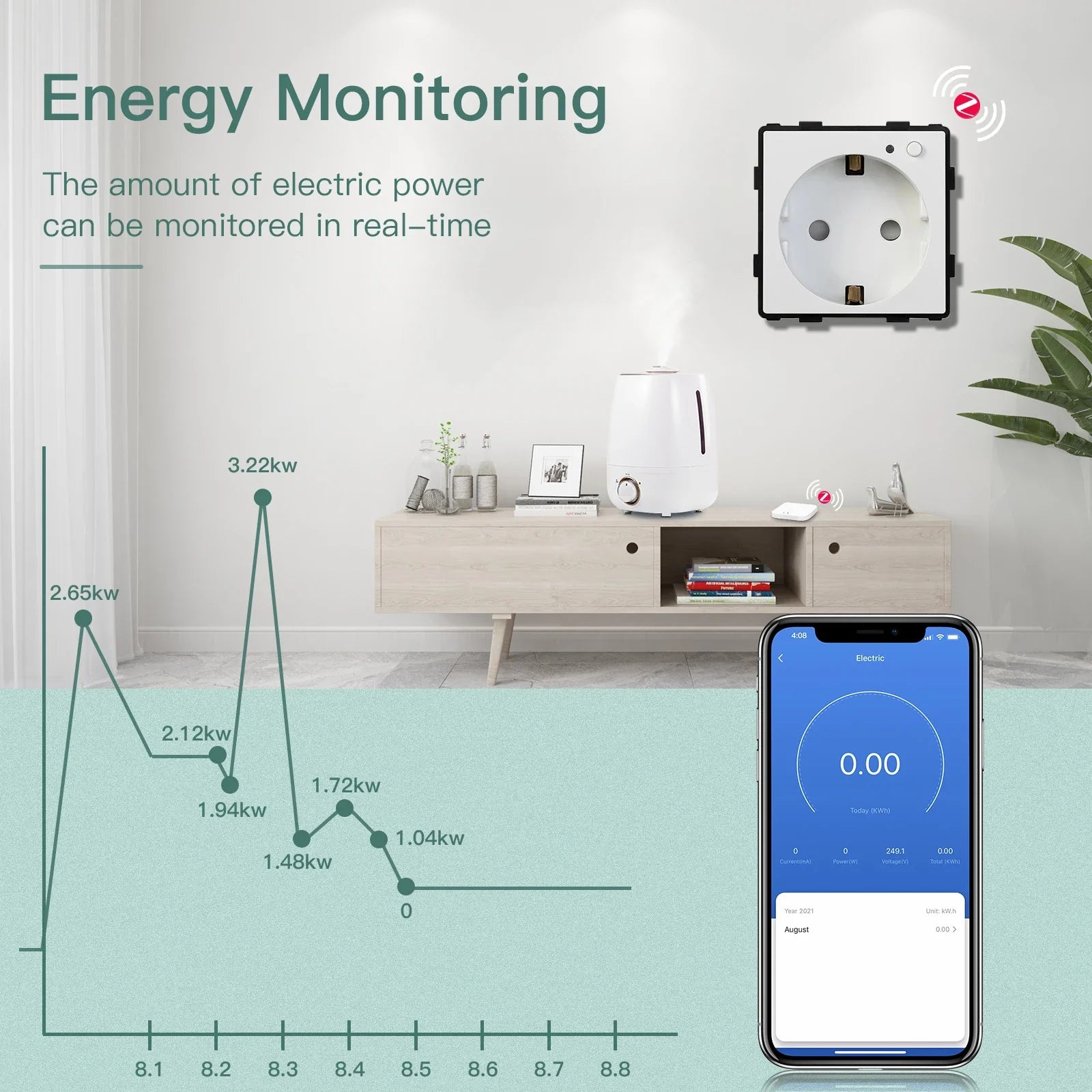 Power Monitoring: Track real-time energy consumption via the Tuya Smart Life app.