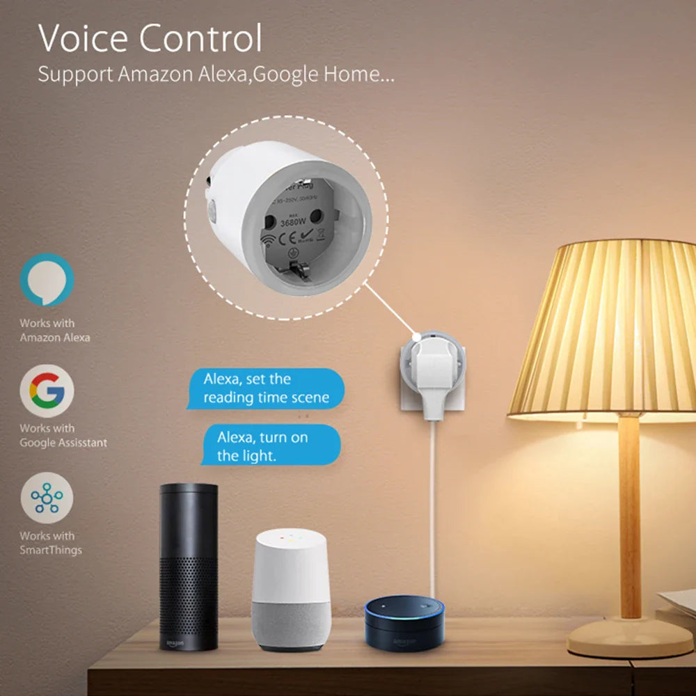 Upgrade your home with the Tuya Smart Home 16A Power Metering Plug for convenient, energy-efficient control of your devices!