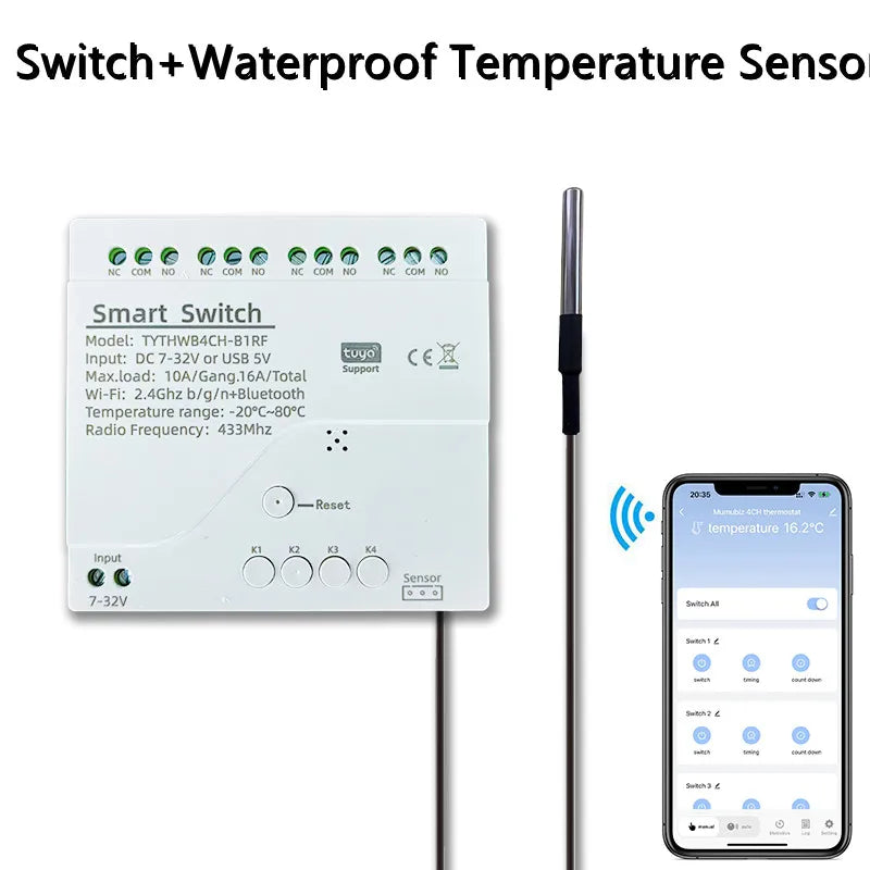 Tuya Smart 4-Channel Relay with Temperature & Humidity Sensor