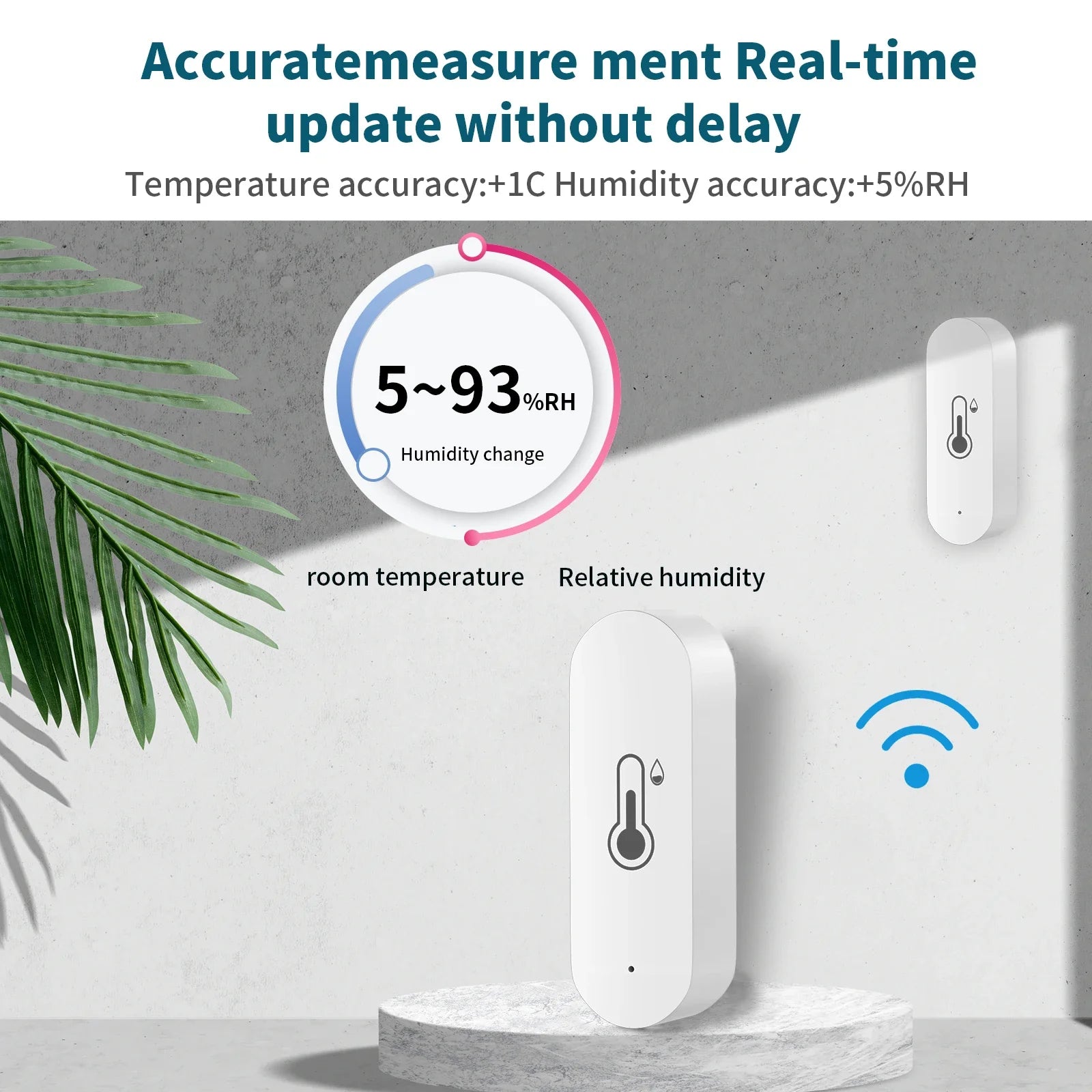 The WiFi Temperature & Humidity Sensor provides real-time monitoring of indoor climate conditions. Battery-powered and compatible with Alexa and Google Home, it offers convenient app-based control for smart home automation.