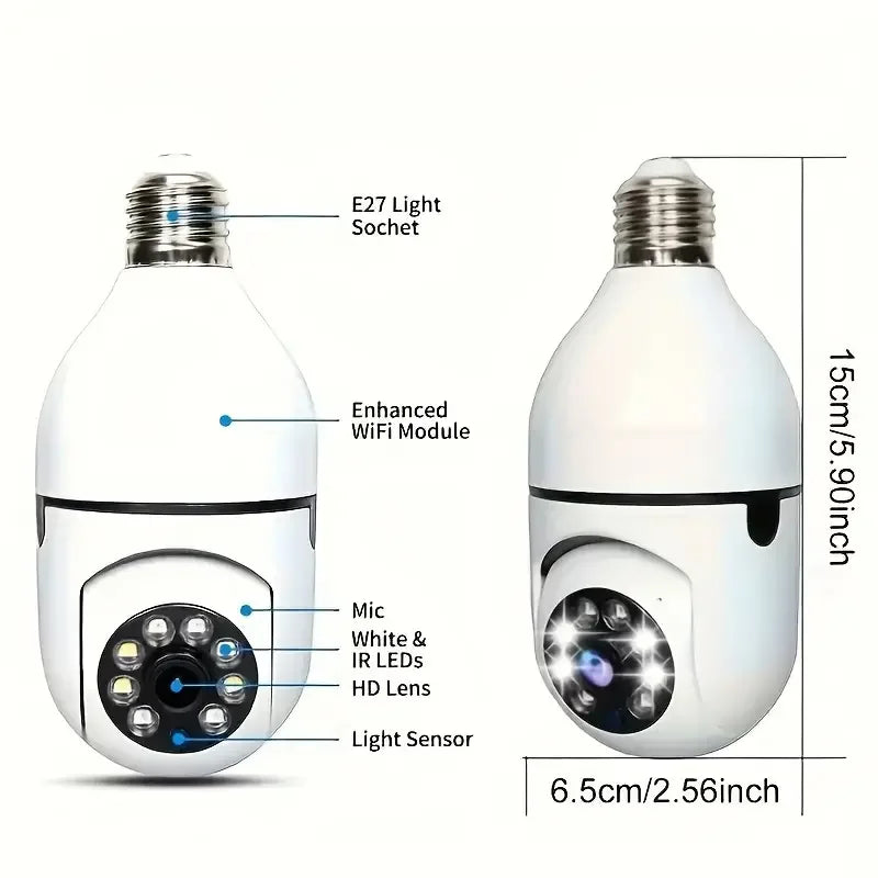 E27 Bulb Design: Easy installation by simply replacing your existing light bulb with this camera, providing a convenient security solution.