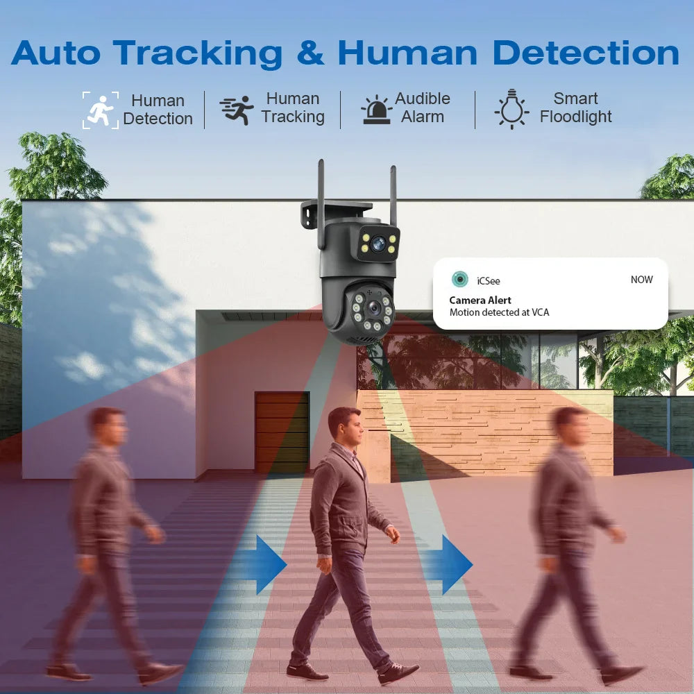 Protect your property with the 8MP WiFi PTZ Dual-Screen Security Camera — an outdoor surveillance powerhouse with smart auto tracking, ultra-clear video, and ICSee app control for 24/7 peace of mind.