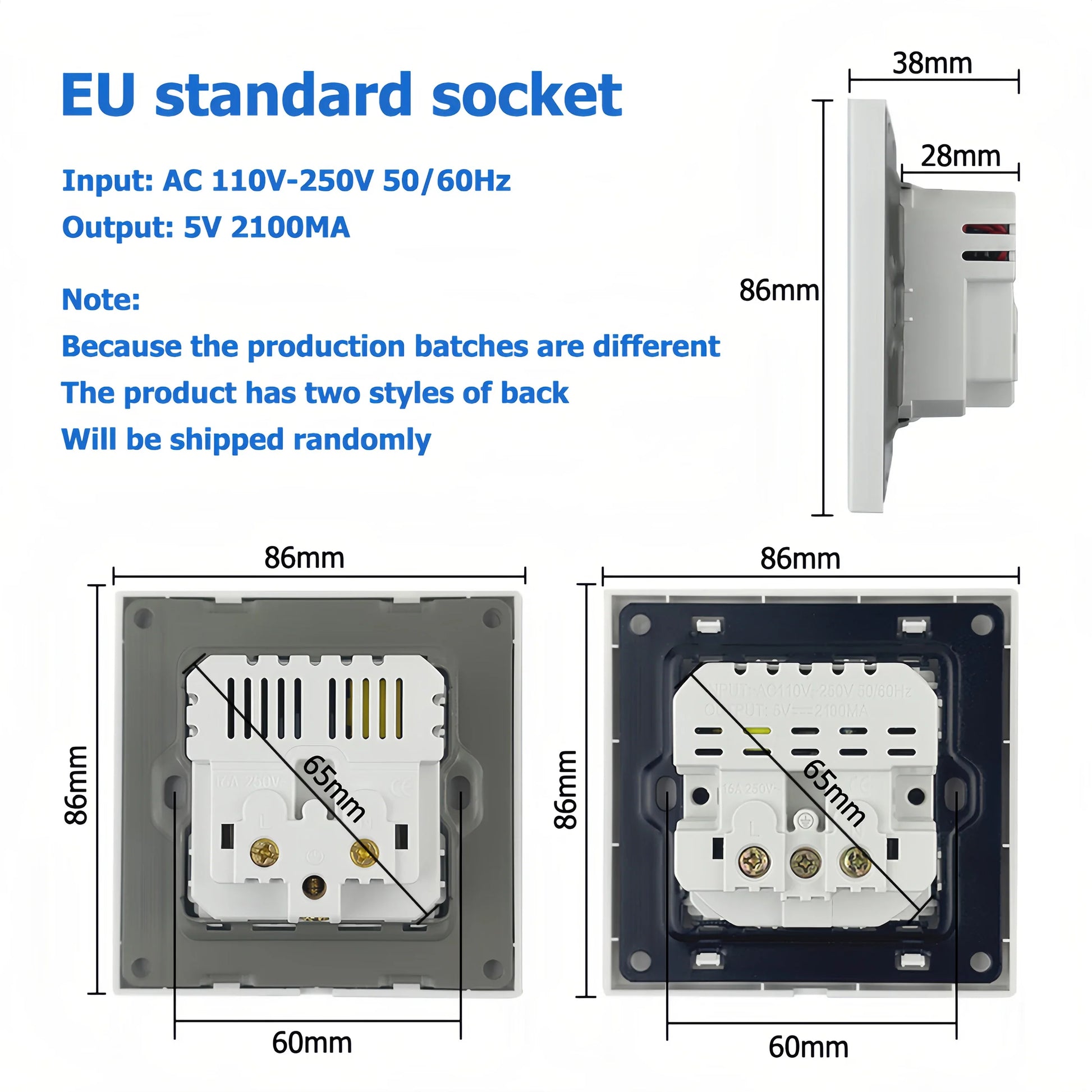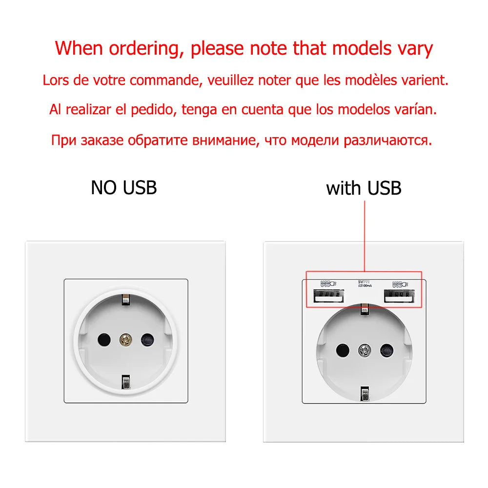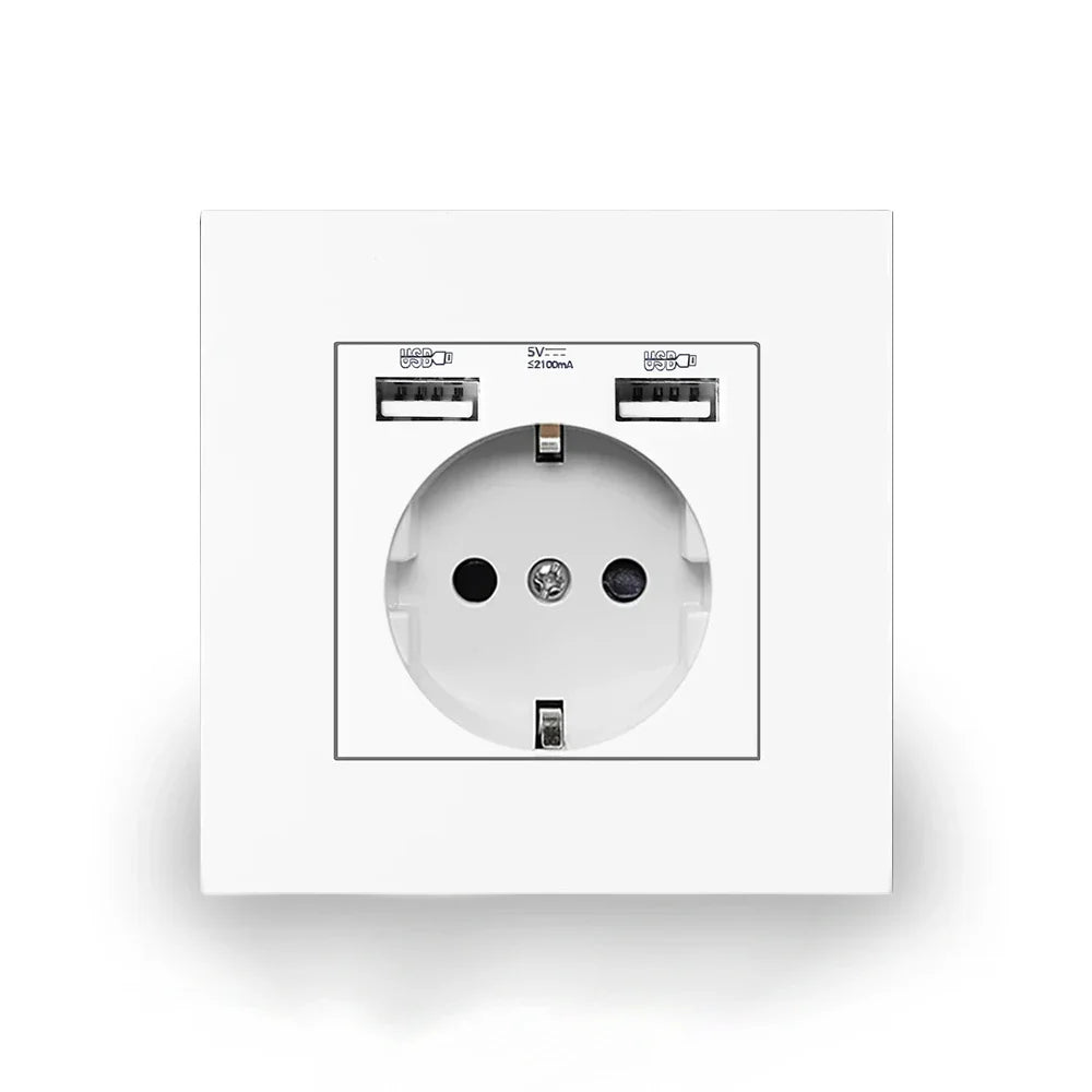 Charge your devices efficiently with this EU wall power socket featuring a 16A electrical outlet and dual USB ports (5V 2.1A). Designed to fit standard 86mm x 86mm panels, it’s perfect for IOS and Android phone charging at home or office.