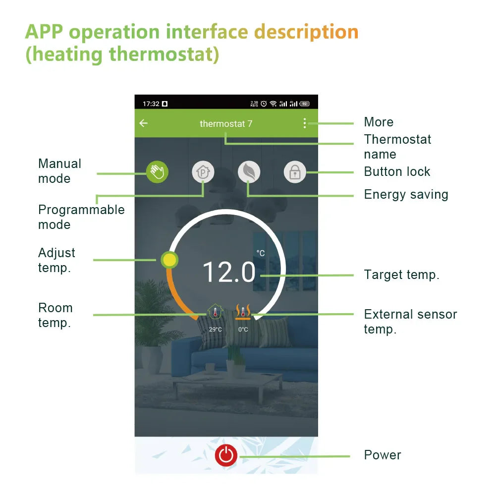 Smart WiFi control via Tuya app for remote temperature management
