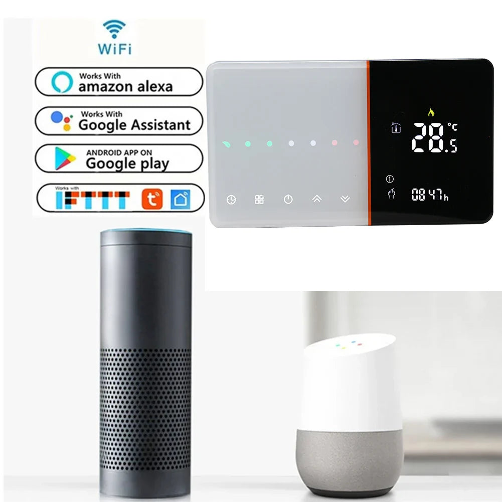 The Qiumi Smart WiFi Thermostat is perfect for controlling water and floor heating systems, including electric and gas boilers. It works with Alexa and Google Home for convenient voice control and remote management.