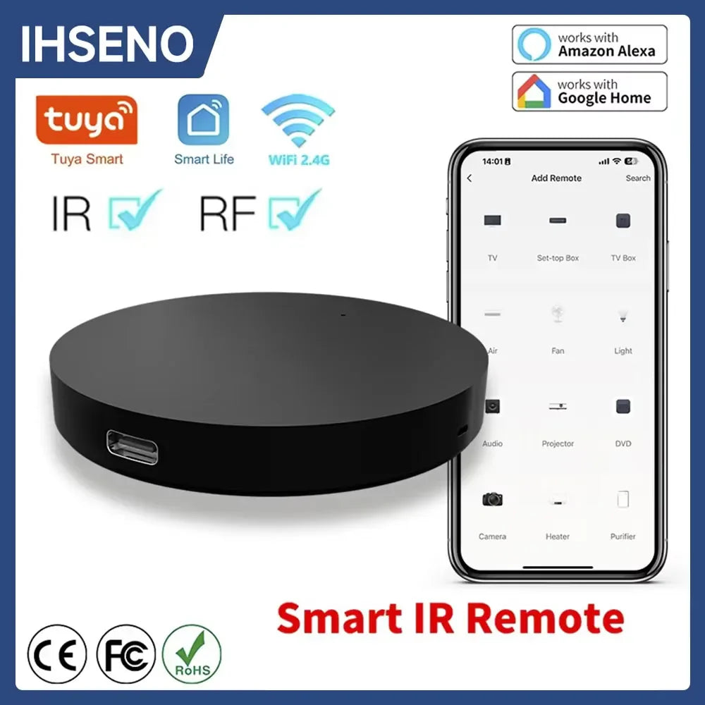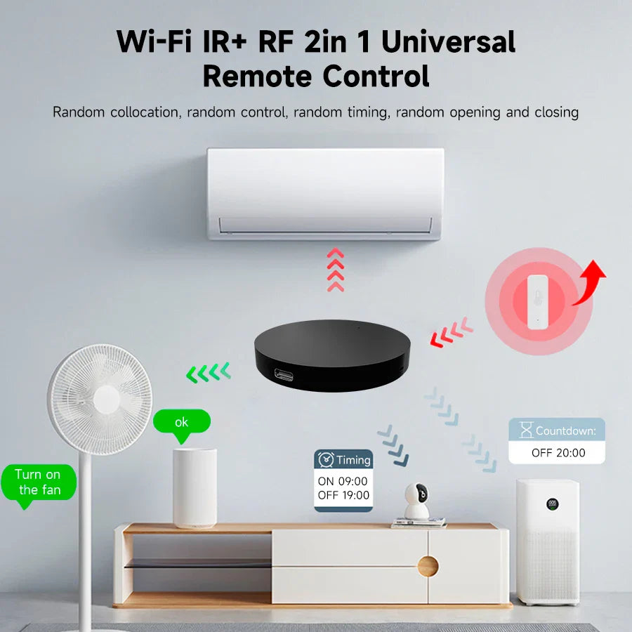 Control your home appliances seamlessly with the Tuya 2.4G WiFi IR/433MHz IR RF Remote. This universal infrared remote works with air conditioners, TVs, and more, and integrates with Alexa and Google Home for voice control and smart home automation.
