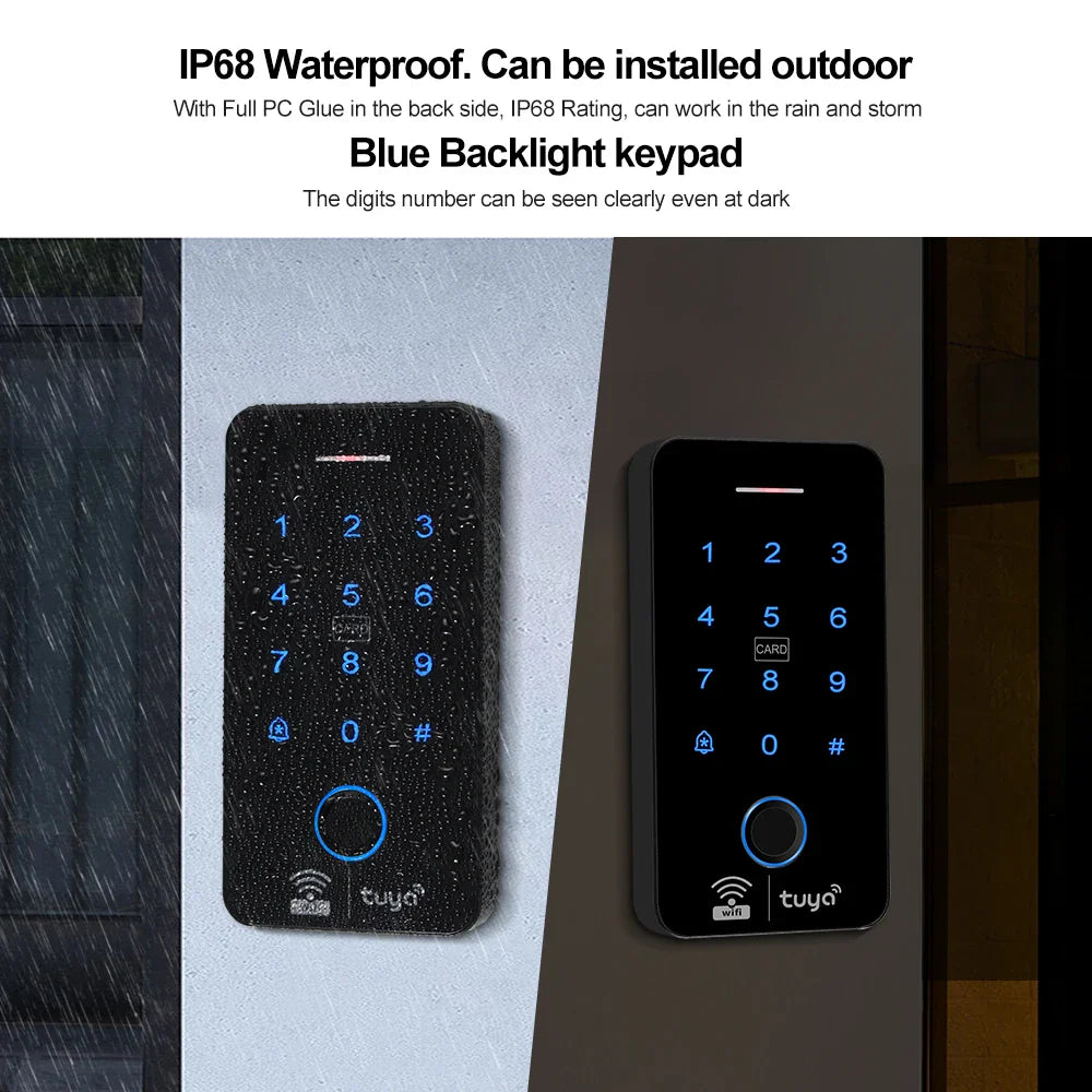 Enhance your security with the WiFi Tuya Fingerprint Access Controller. Featuring an outdoor waterproof design, RFID keypad, and support for 125KHz and 13.56MHz RFID, it offers smart APP unlock and reliable fingerprint access.