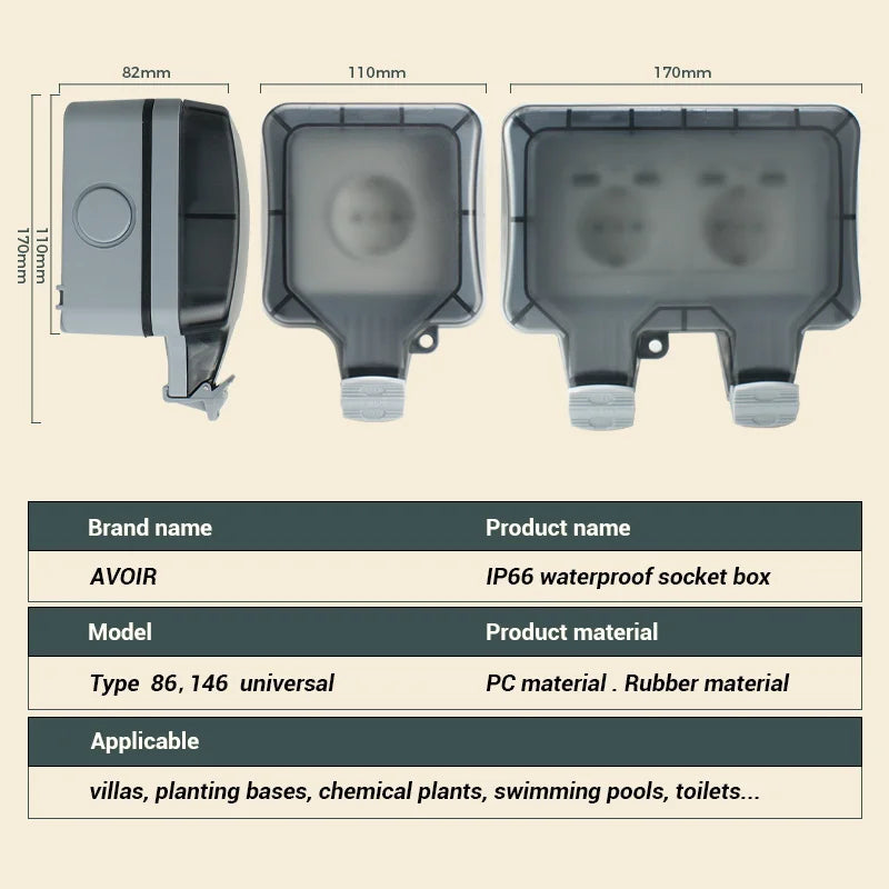 Ensure safe and reliable outdoor power with the Avoir IP66-rated waterproof and dustproof electrical socket. Perfect for gardens, bathrooms, and other wet or dusty environments, this European standard wall plug delivers durable protection and easy access to electricity.