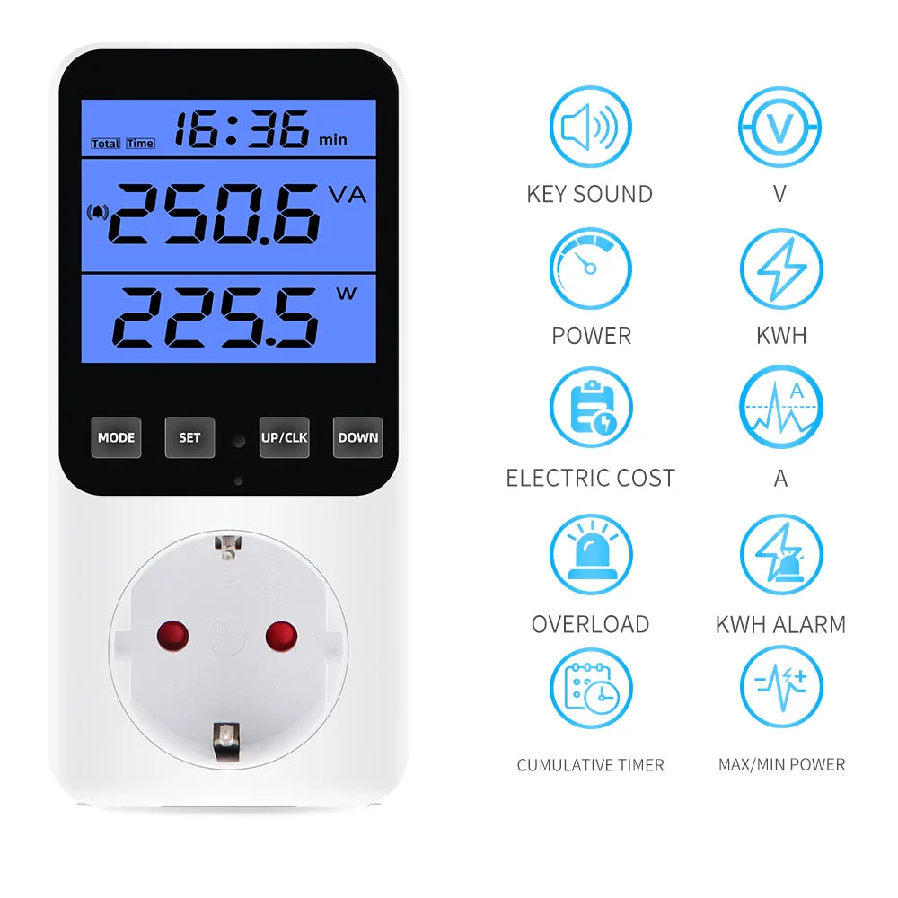 • Clear digital display for easy reading of power, voltage, and energy consumption data