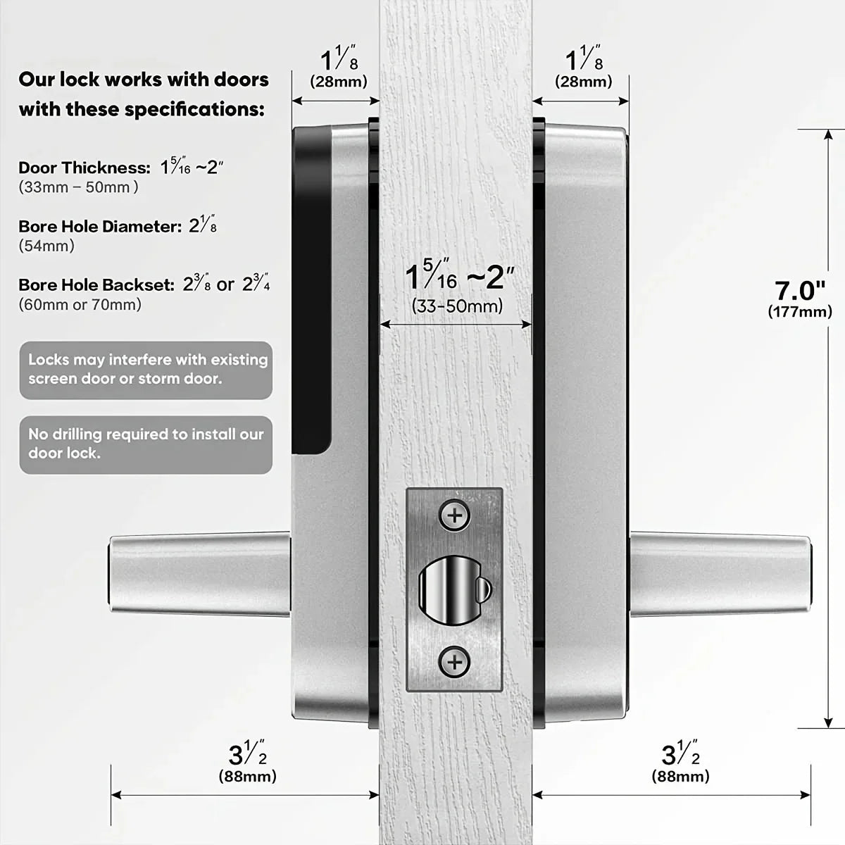 Our lock works with doors with these specifcations: